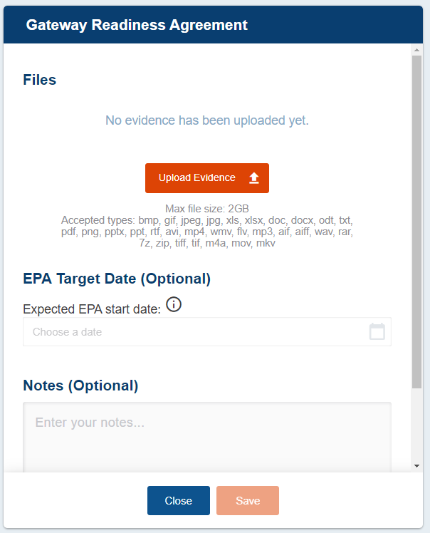 When all evidence has been uploaded, a green ‘Confirm Gateway Readiness’ button will appear.